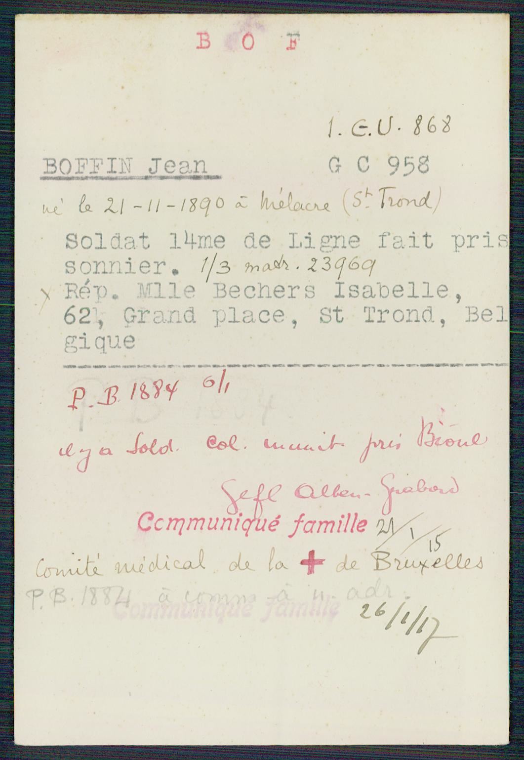 Jean had nog een broer 'Hubert-Joseph' die op 04/12/1916 verplicht werd om te gaan werken in Duitsland.