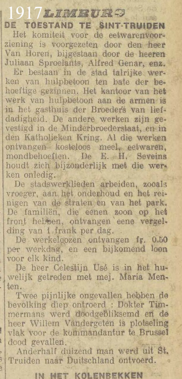 Krantenknipsel over de Duitse bewegingen in de omgeving van Sint-Truiden in augustus 1914